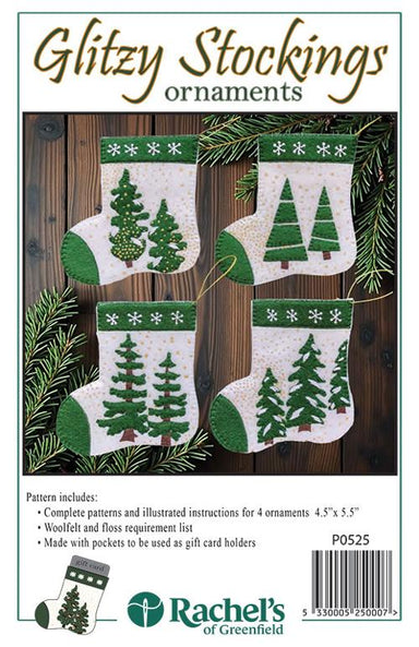 Use this stunning kit from Rachel's of Greenfields to create glitzy stockings that make perfect holiday decor! Included in the kit are: Woolfelt...