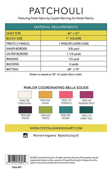 Patchouli is a Layer Cake-friendly quilt pattern designed by Crystal Manning to coordinate with Parlor - her brand new fabric collection for Moda F...