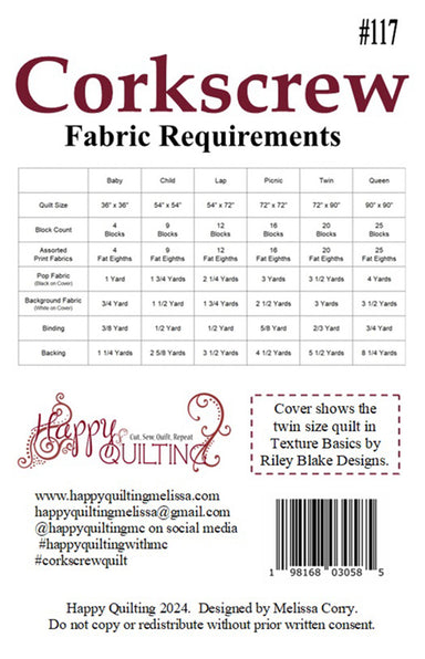 The Corkscrew Quilt by Melissa Corry of Happy Quilting is the perfect geometric design to make a statement and is fat quarter friendly. The interlo...
