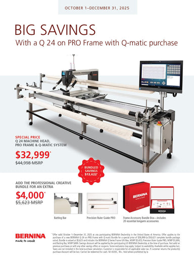 With its solid and sturdy design, the BERNINA PRO Frame is a perfect companion for Q Series longarm machines. Best yet, the BERNINA PRO Frame is av...