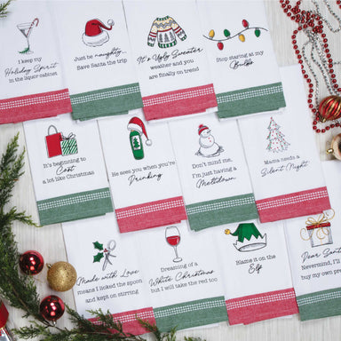 These tea towels from Kay Dee Designs' "Snarkasms" collection feature sarcastic Christmas wishes sure to provide a chuckle this holiday season.