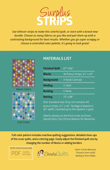 Use leftover strips to make the colorful quilt, or start with a brand new bundle. Choose as many fabrics as you like and pair them with a contrasti...
