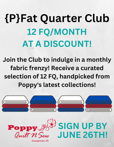 Poppy's is thrilled to carry an assortment of half packs from Sassy Sunflower Quilts! Featuring 5 half yard pieces of fabric curated by Poppy's and...