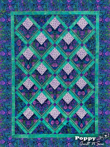 Quilt design by Quilting Renditions, featuring Midnight Perch. Stunning fabrics glitter withsilver in this gorgeous pattern! Finished Quilt: 52 1/...