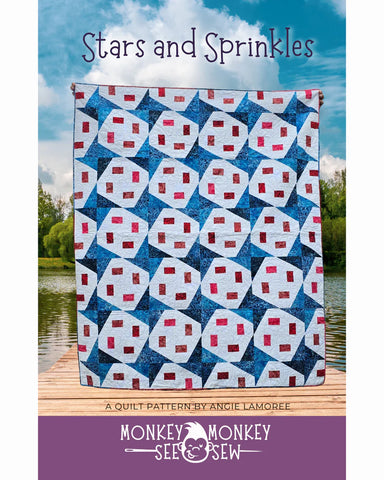 Stars and Sprinkles quilt pattern designed by Angie Lamoree for Monkey Monkey See Sew. Project size options include: Table Runner 20" x 56" Lap ...