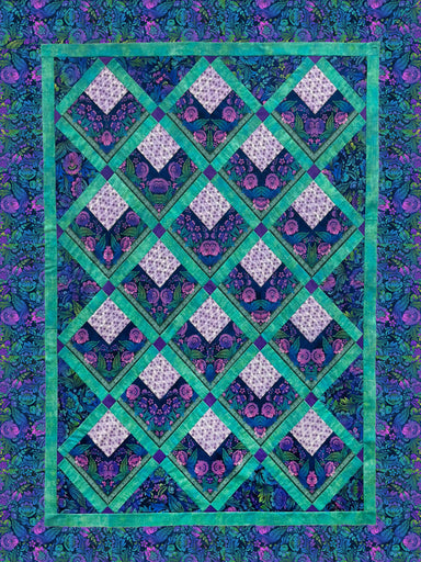 Quilt design by Quilting Renditions, featuring Midnight Perch. Stunning fabrics glitter withsilver in this gorgeous pattern! Finished Quilt: 52 1/...