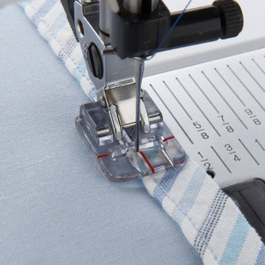 This Quilting Foot is great for joining pieces of fabric because it gives clear visibility when sewing 1/4", 1/8" and 3/8" seams. The red lines ind...