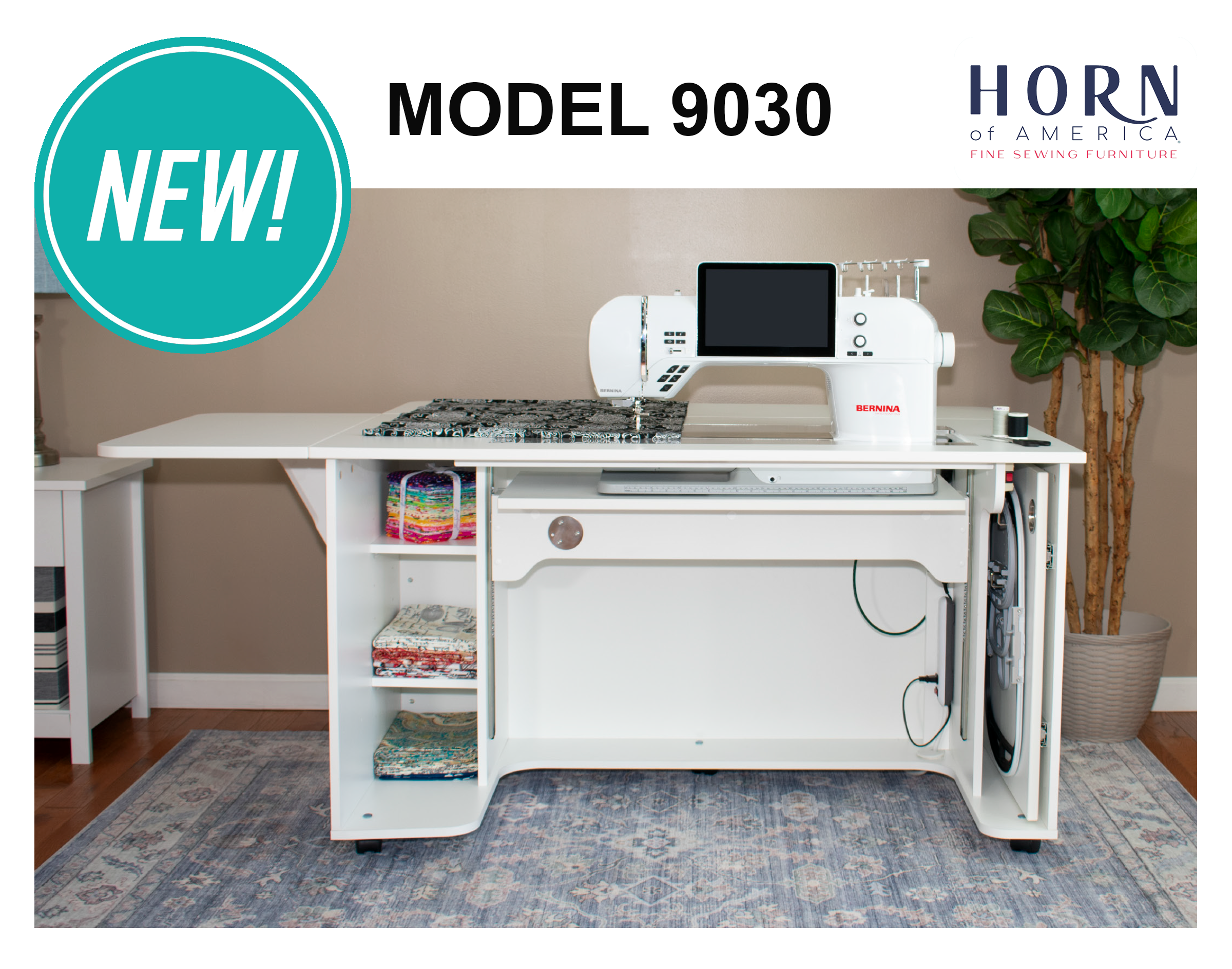 The new Model 9030 Sewing Cabinet is the ultimate space-saving cabinet, built to accommodate today’s largest sewing machines. Engineered for efficiency, it features adjustable shelving and dedicated storage for embroidery hoops. A rear drop leaf and a left-side swing-up table create an expandable workspace—perfect for larger projects. Despite its compact footprint, the Model 9030 offers more leg and knee room than ever before, delivering comfort without compromise.