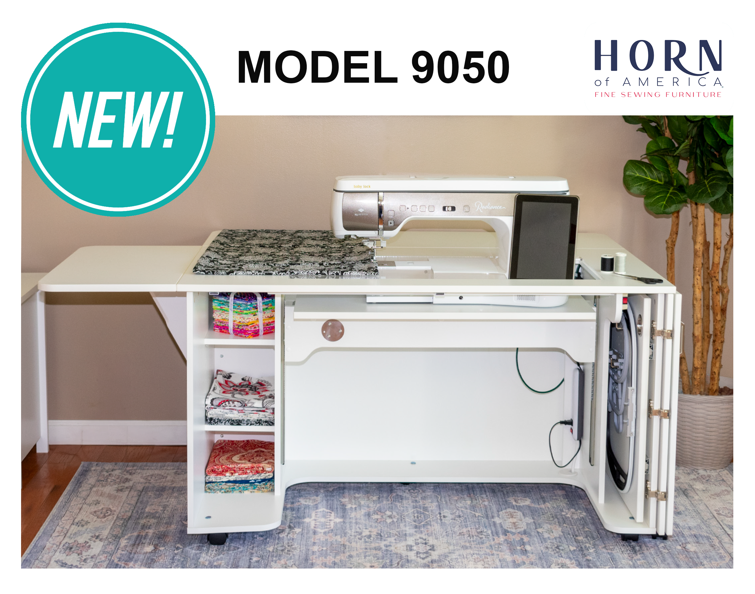 If you’re working with limited space but need a cabinet that can comfortably fit today’s largest sewing machines, the new Model 9050 Sewing Cabinet is the perfect solution. This compact sewing center is designed to maximize functionality in small spaces, offering convenient storage options, a rear drop leaf, a left-side swing-up table, and a bifold door for easy access. Ideal for shared spaces, it combines style and practicality into one streamlined unit.