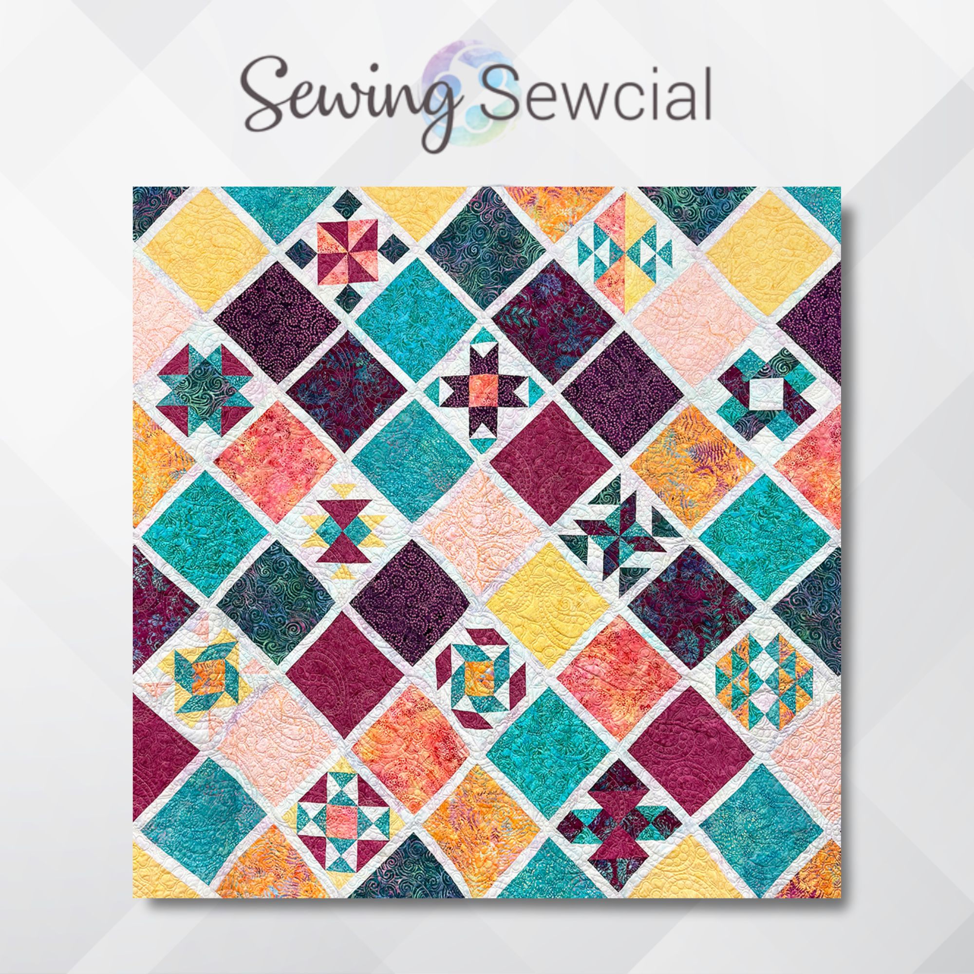 Join us for another Sewing Sewcial Shop Hop featuring 12 amazing quilt stores from across the country! Start your journey by visiting each store (virtually or in person) to collect a pre-cut block kit unique to each shop. For more information on how and where to collect your blocks, please visit the Sewing Sewcial website here